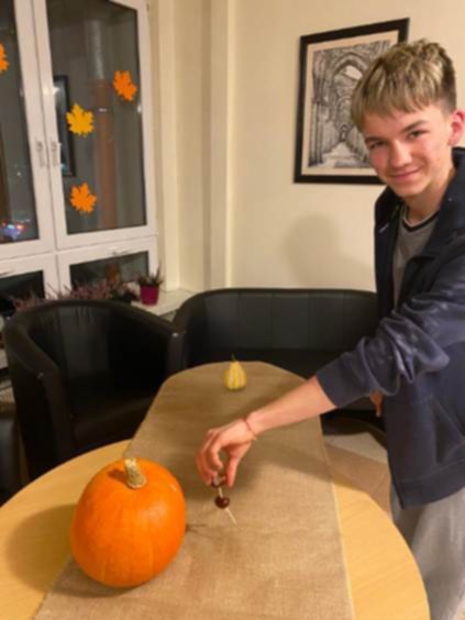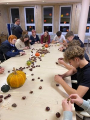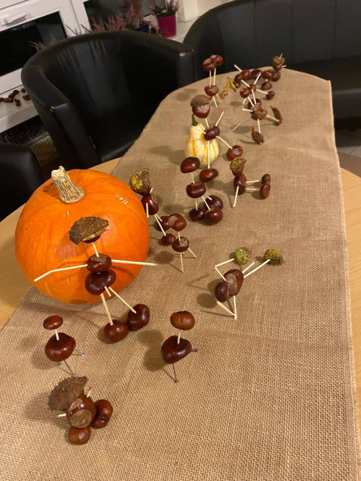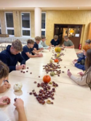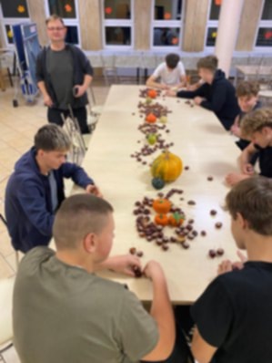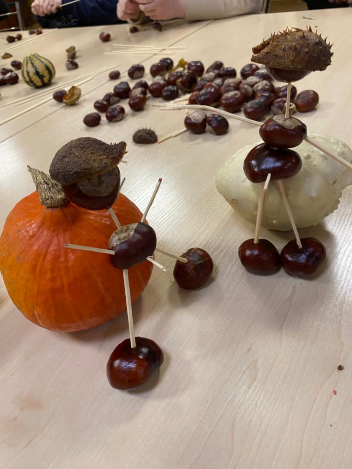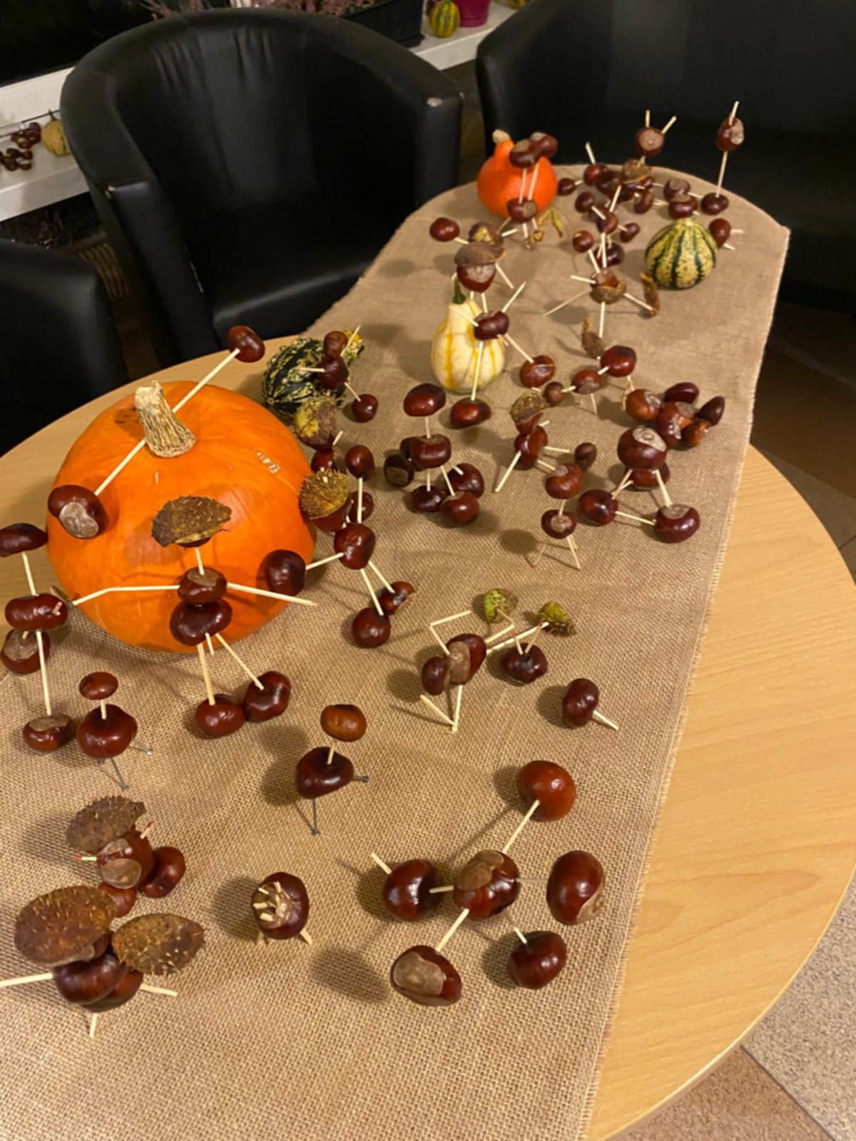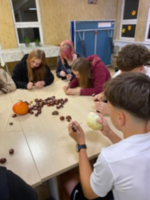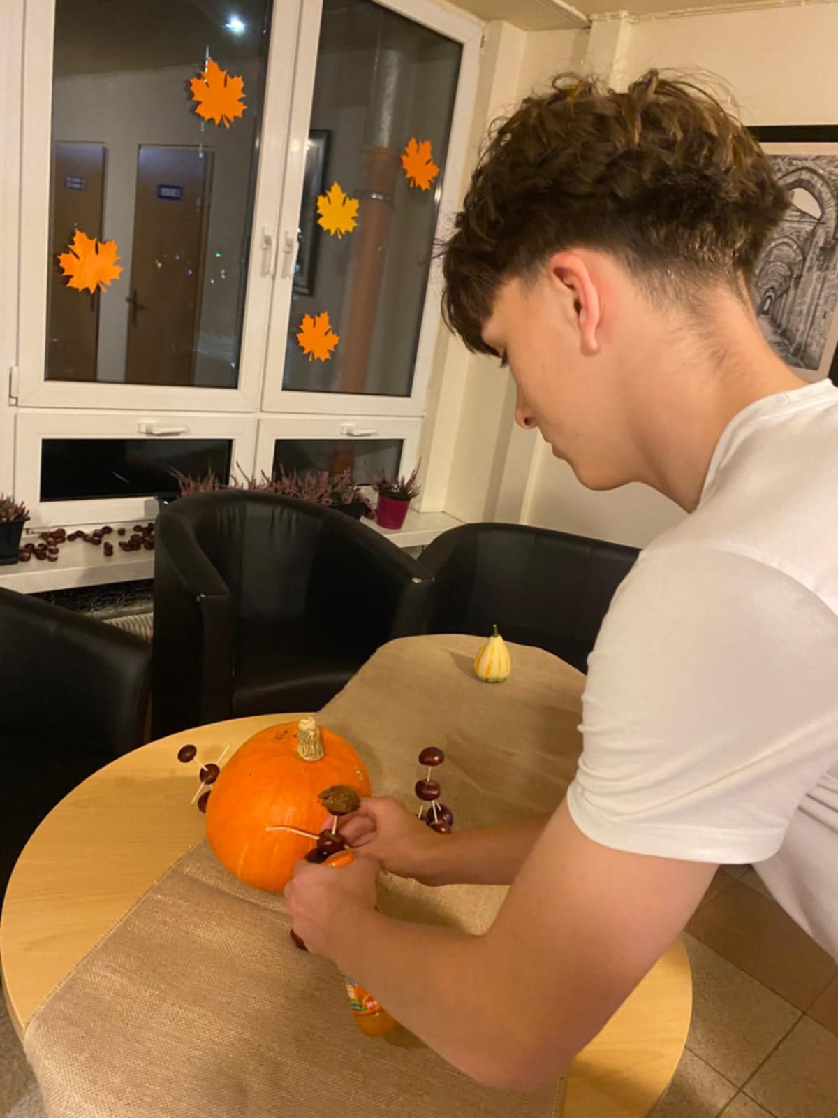 Wychowankowie Bursy nr 11 przynieśli ze sobą dobry humor, mnóstwo energii i kreatywne pomysły. Podczas warsztatów powstały przepiękne jesienne figurki i dekoracje z kasztanów, liści i żołędzi i dyni.